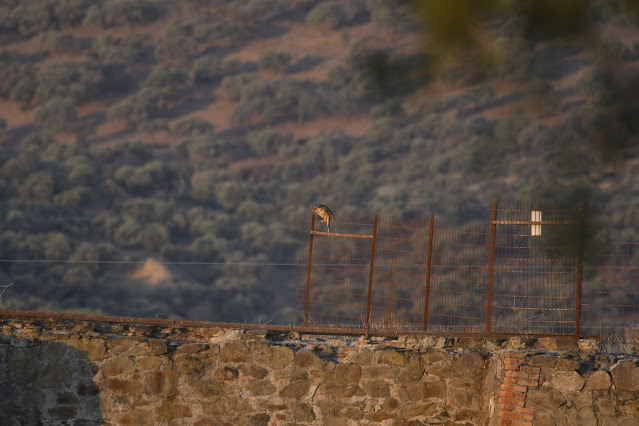 Un muy activo Gavilán, adicto a las palomas que anidan en la boca de la antigua mina. Aquí ha encontrado su despensa y veo como su número decrece a diario. Los ataques a primera hora de la mañana se repiten un día tras otro. Por otro lado muchas otras aves han dejado de acercarse a la alberca dónde me sitúo para fotografiarlas. El grupo de árboles próximo debe de ser también visitado por el predador, aunque solo he podido observarlo en una fugaz ocasión. Pero el silencio de las aves delata su presencia.